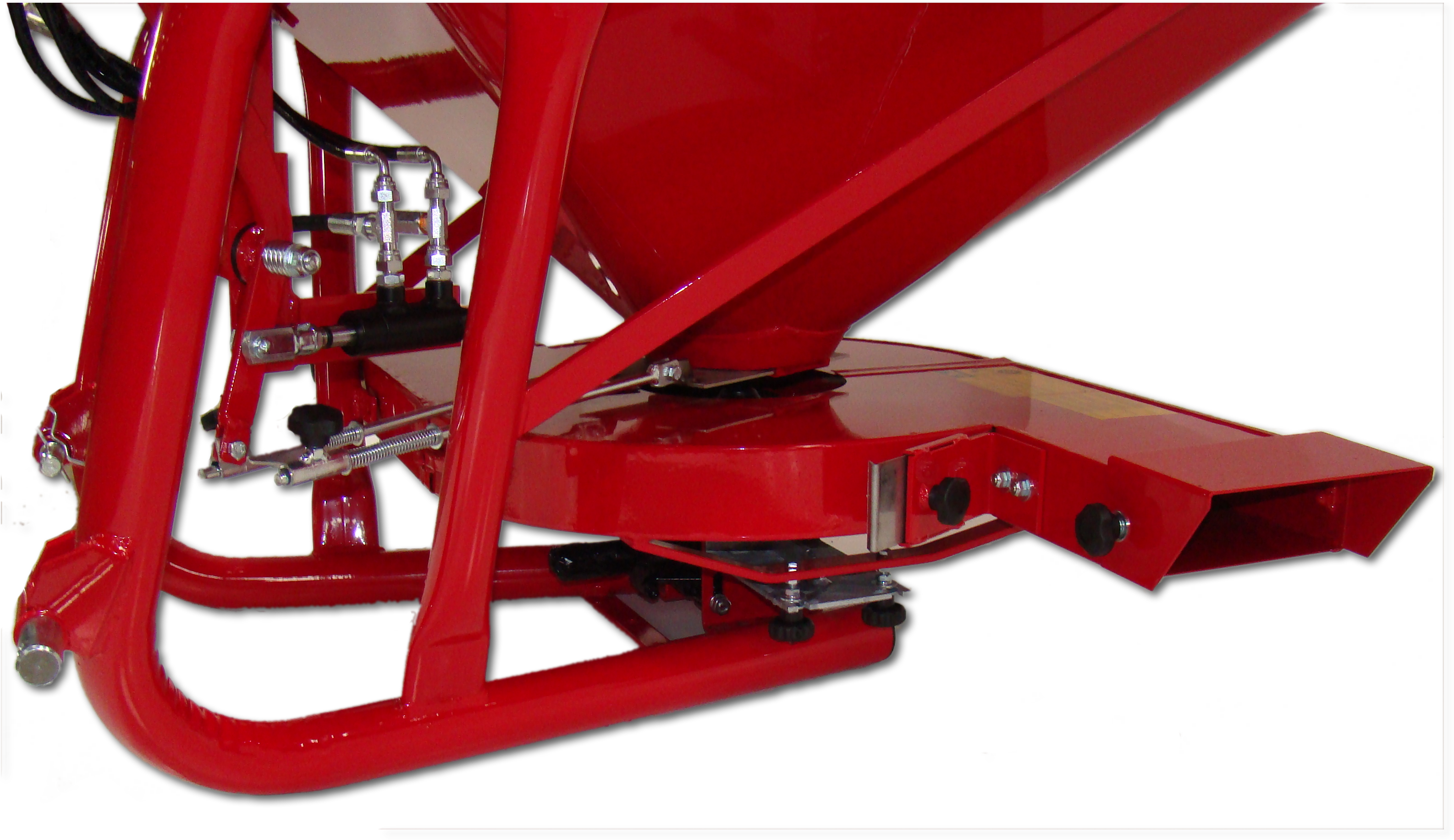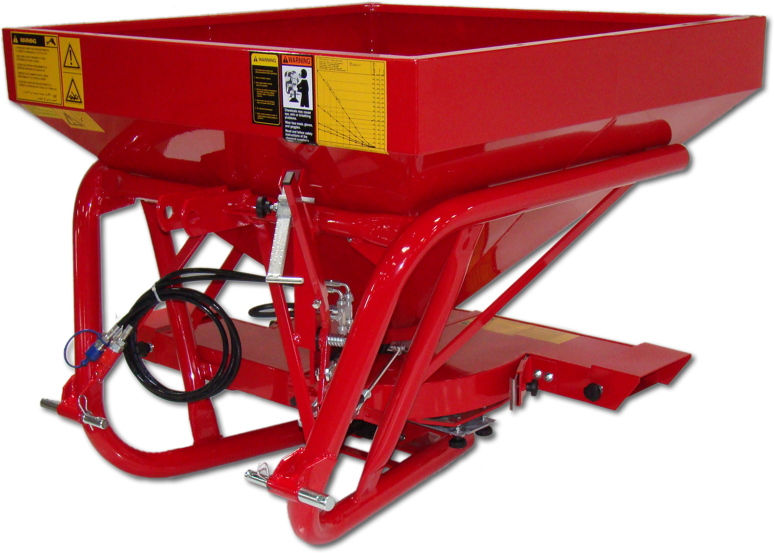 The material shoots out of the sides making it a perfect tool for winery/vineyards, blueberry farms, Christmas tree farms or anywhere else that precise application is necessary. “Side-Shot” components can be removed to use the spreader as any typical 3-Point mounted Fertilizer Spreader.
